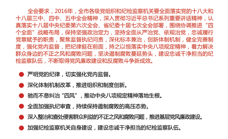 中国共产党烟台市第十二届纪律检查委员会第八次全体会议,于2016年2月2日举行。出席这次全会的市纪委委员31人,列席320人。